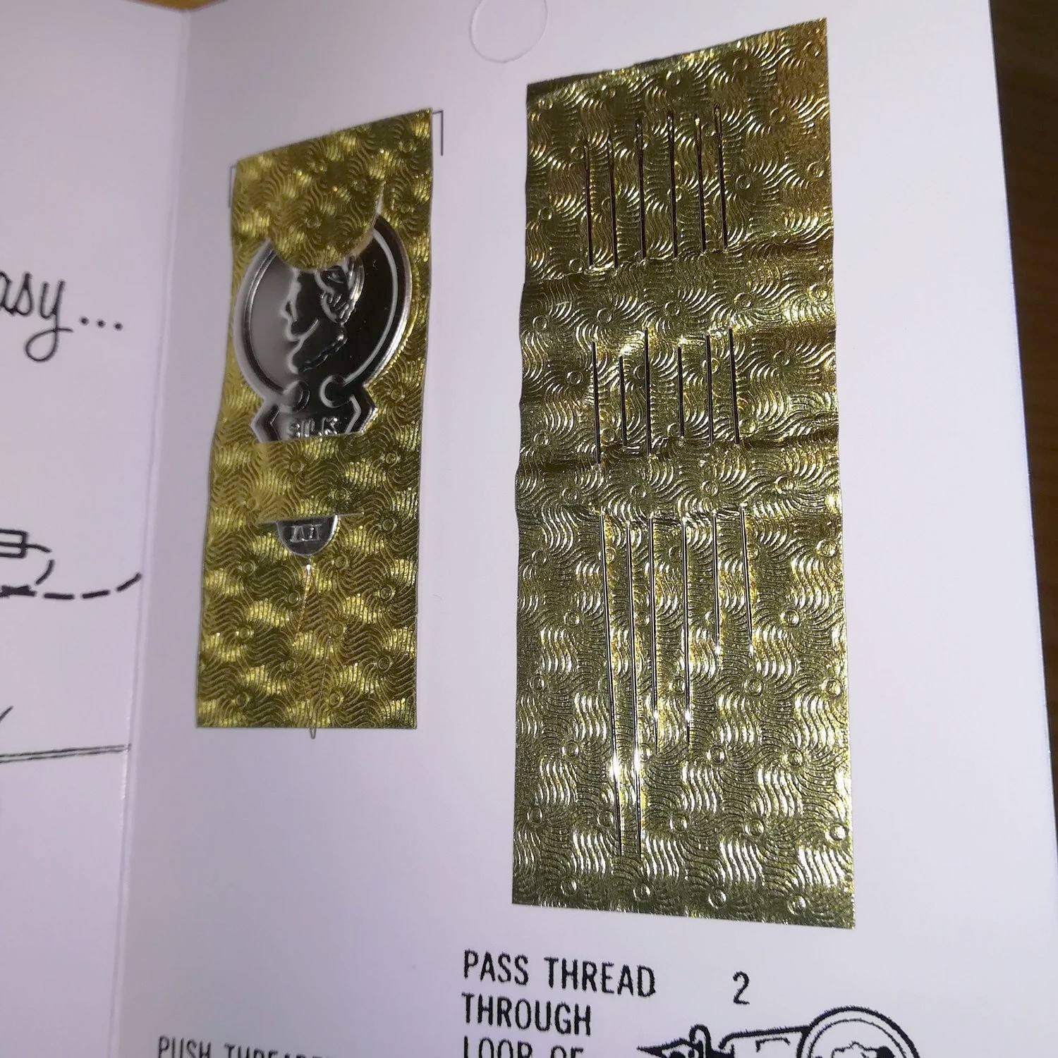 Ensemble composé de 6 aiguilles (3 tailles différentes) et d'un enfile-aiguille.
