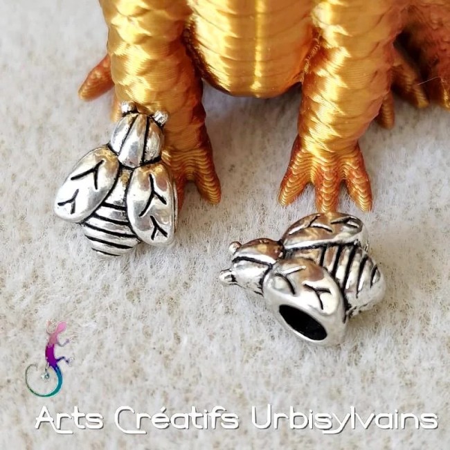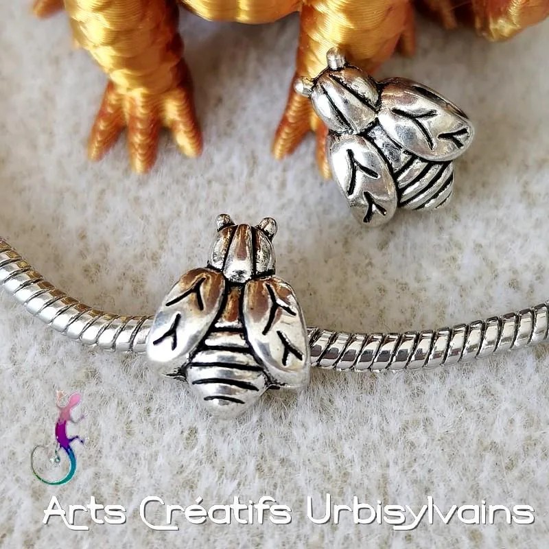 Perle en métal argenté pour bracelet ou collier européen en forme d'abeille.