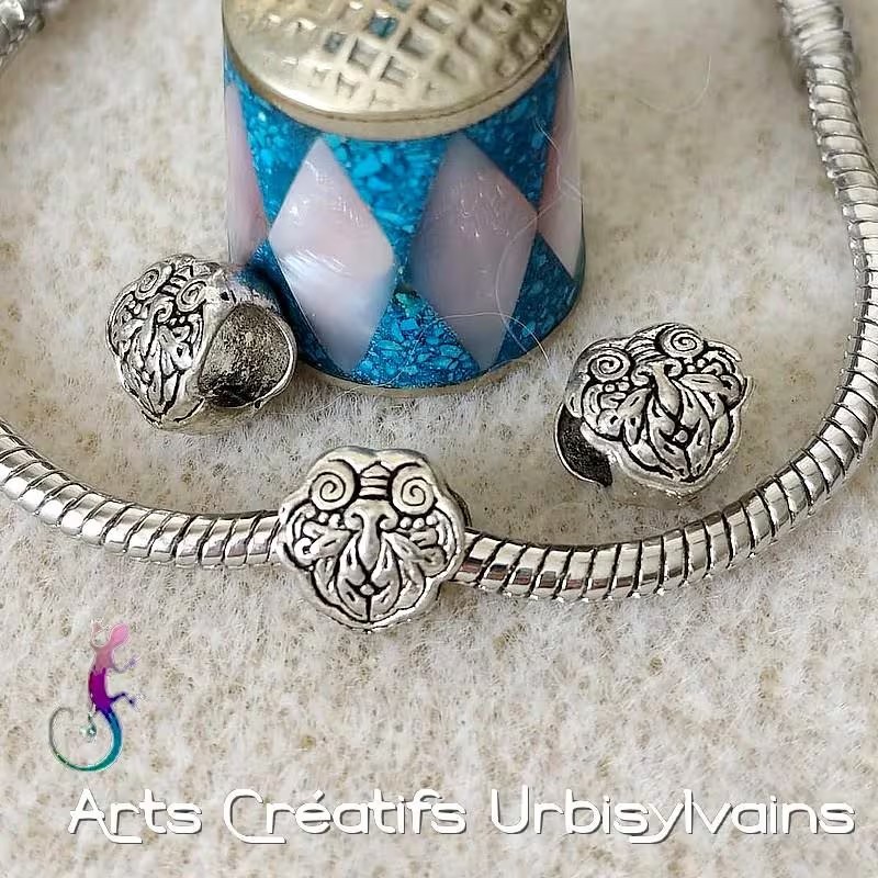 Perle papillon stylisée en métal argenté pour bracelet ou collier européen.