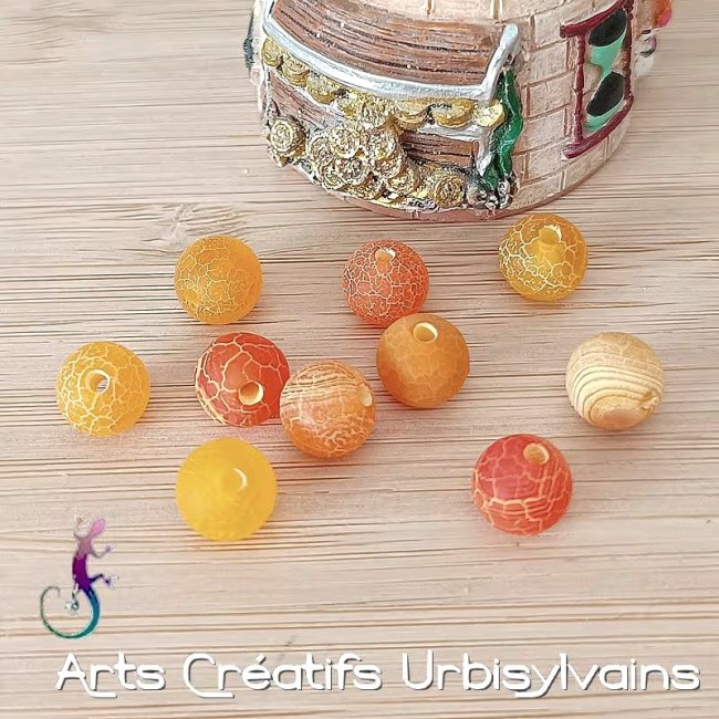 Jolie perle ronde en en agate teintée orange, aspect mat givré. Pierre teintée.