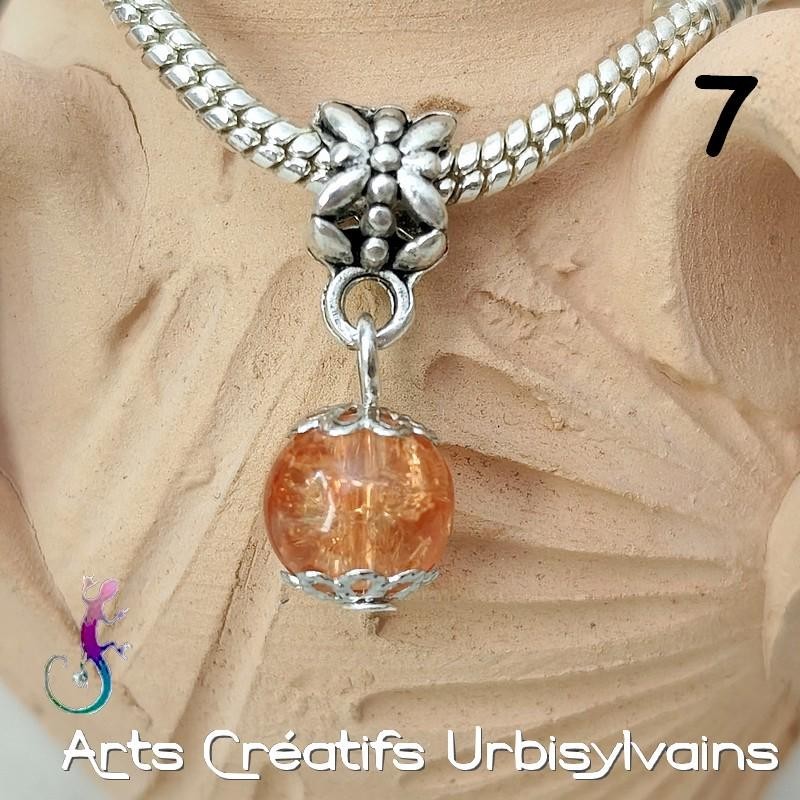 Bélières en métal argenté antique et perles en verre craquelé orange pour bracelet ou collier européen.