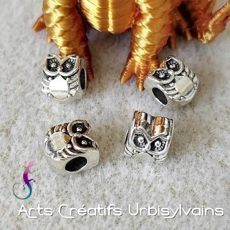 Perles hibou en métal argenté pour bracelet ou collier européen.
