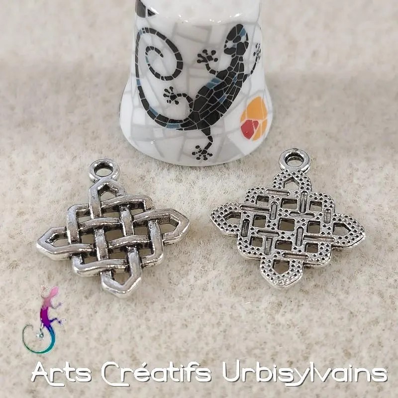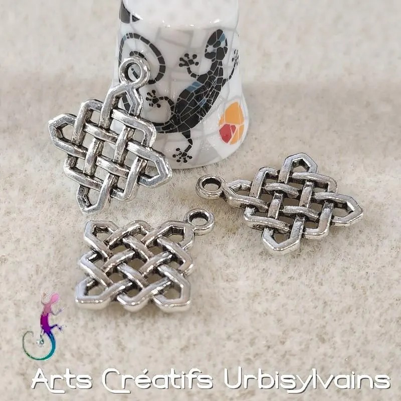 Breloque nœud ethnique en métal argenté antique.