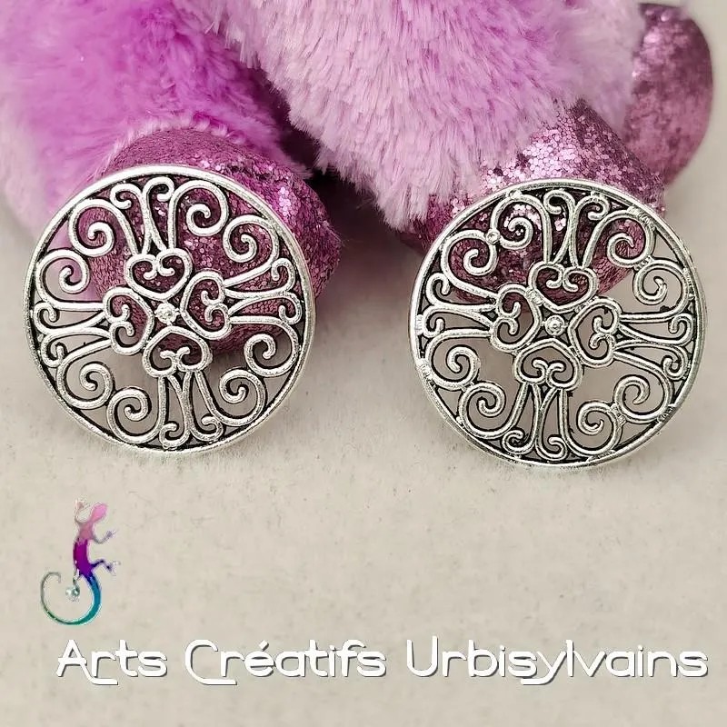 Connecteurs intercalaires ronds style médiéval en métal argenté antique.