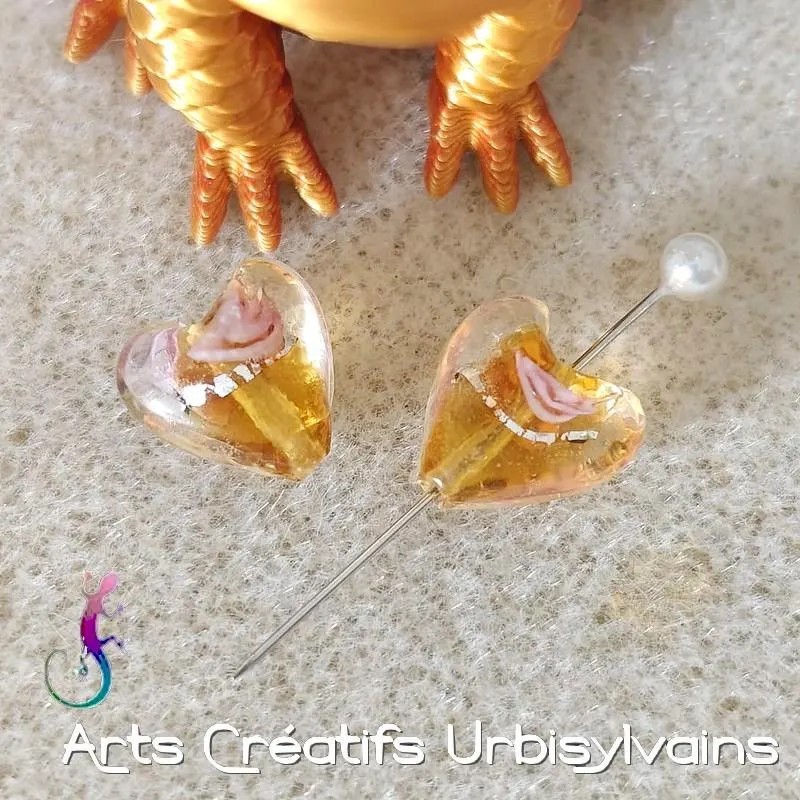 Jolie perle cœur en verre murano avec inclusion d'un fil argenté.
