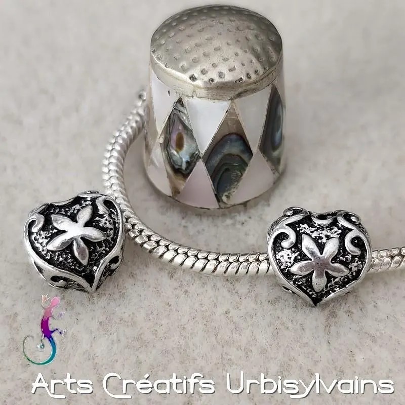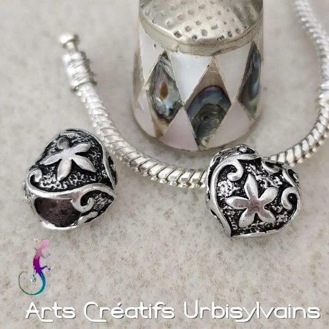 Perle cœur en métal argenté pour bracelet ou collier européen.