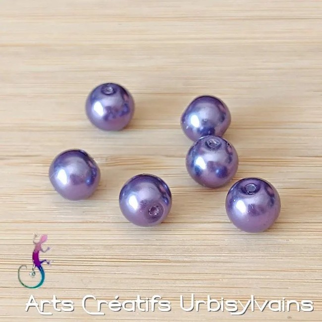 Jolie couleur violette pour ces perles rondes en verre nacré de type renaissance.
