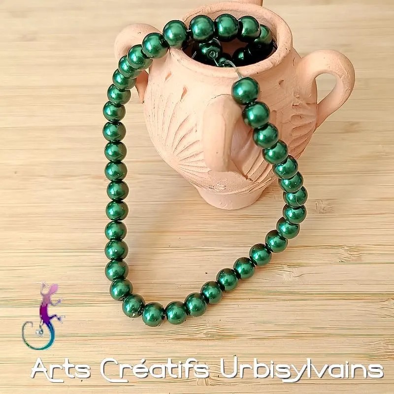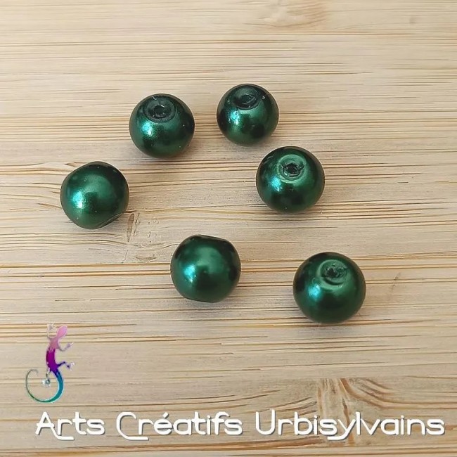 Jolie couleur vert foncé pour ces perles en verre nacré.