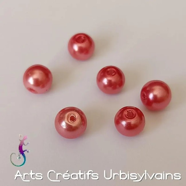 Jolie couleur corail pour ces perles rondes en verre nacré de type renaissance.
