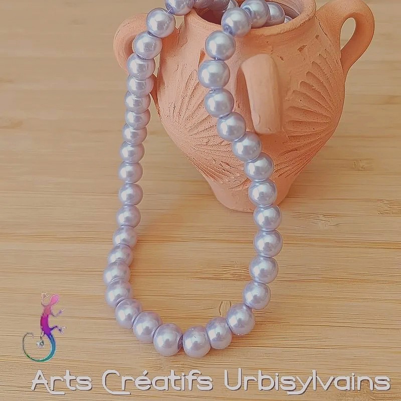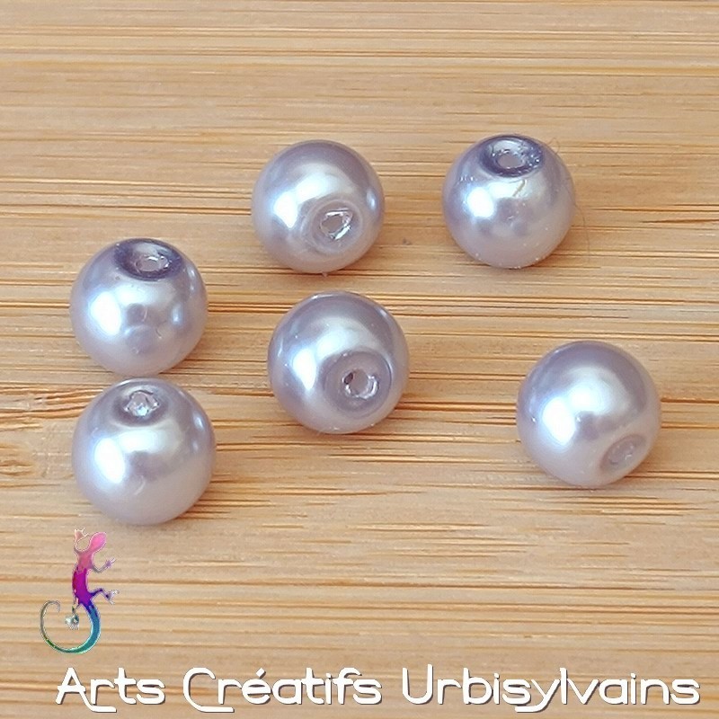 Jolie couleur mauve pour ces perles rondes en verre nacrée de type renaissance.
