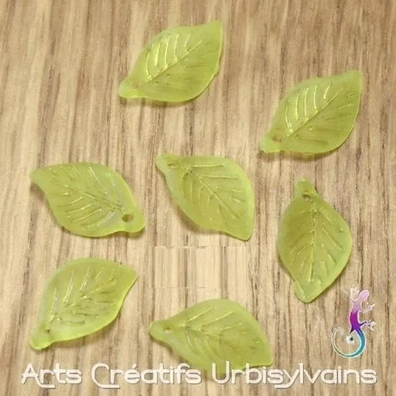 Breloque en forme de feuille verte translucide en acrylique.