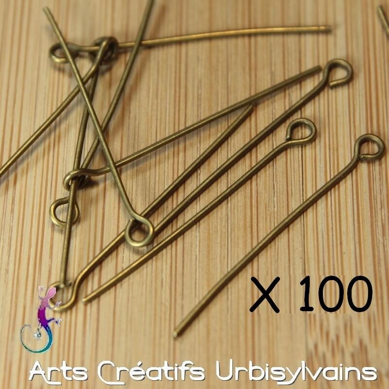 Lot de 100 tiges à œil en métal bronze pour la confection de vos bijoux.