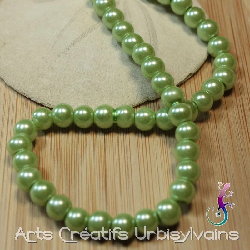 Perles rondes en verre vert pastel de type renaissance.
