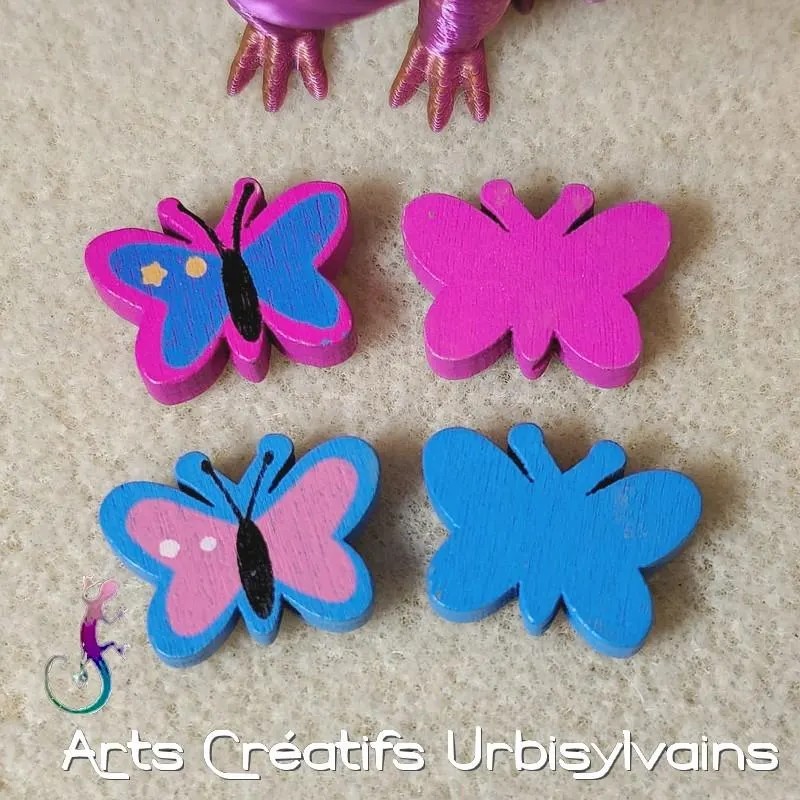 Lot de 14 perles en bois percées en forme de papillon. Ne pas laisser à la portée des enfants de moins de 36 mois.