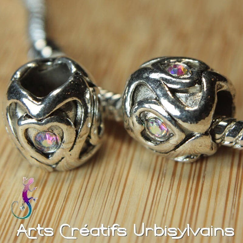 Perle en métal argenté avec strass irisé pour bracelet ou collier européen