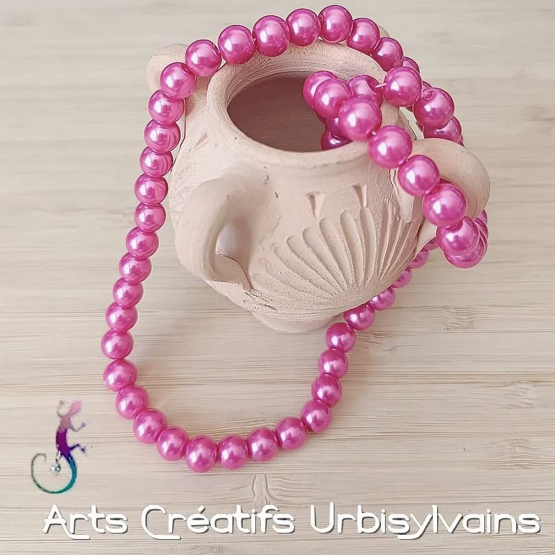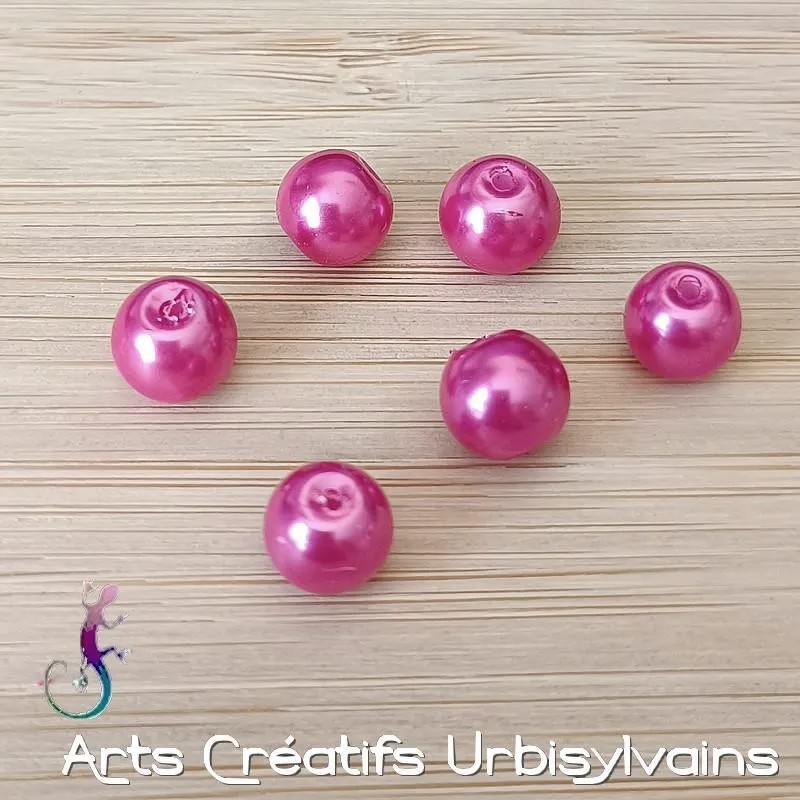 Jolie couleur rose fuchsia pour ces perles rondes en verre nacrée de type renaissance.