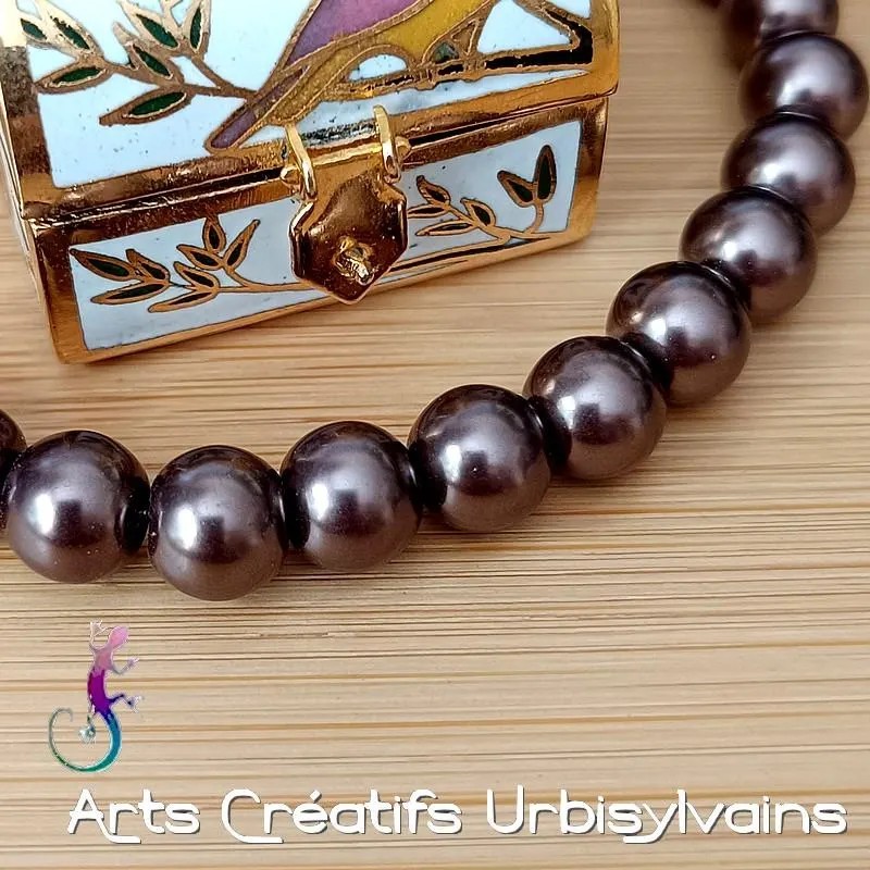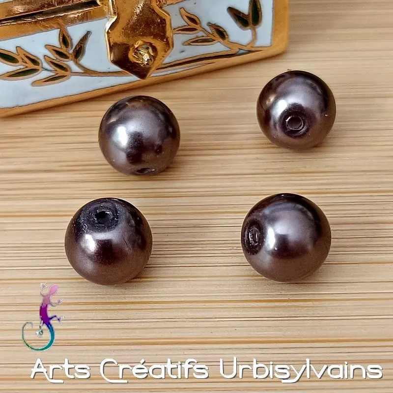 Jolie couleur café pour ces perles rondes en verre nacré.