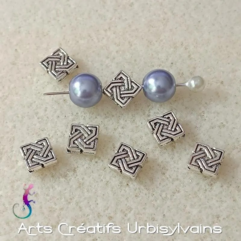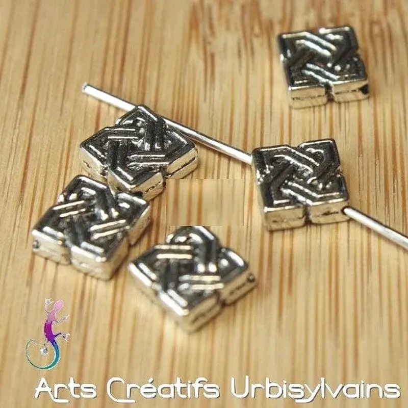 Jolie perle intercalaire carrée avec nœud ethnique.