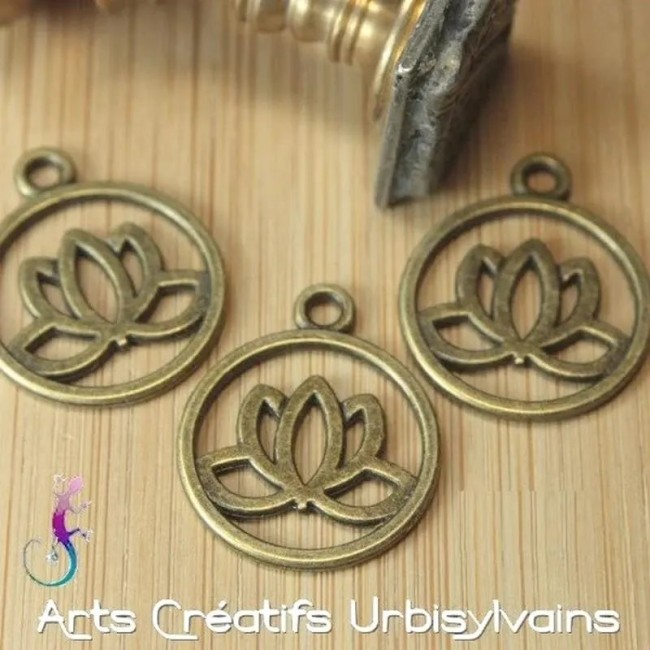 Pendentif fleur de lotus en métal bronze.