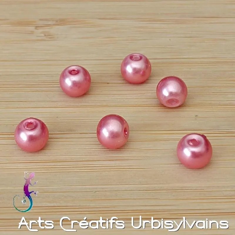 Perles rondes en verre de type renaissance vieux rose.