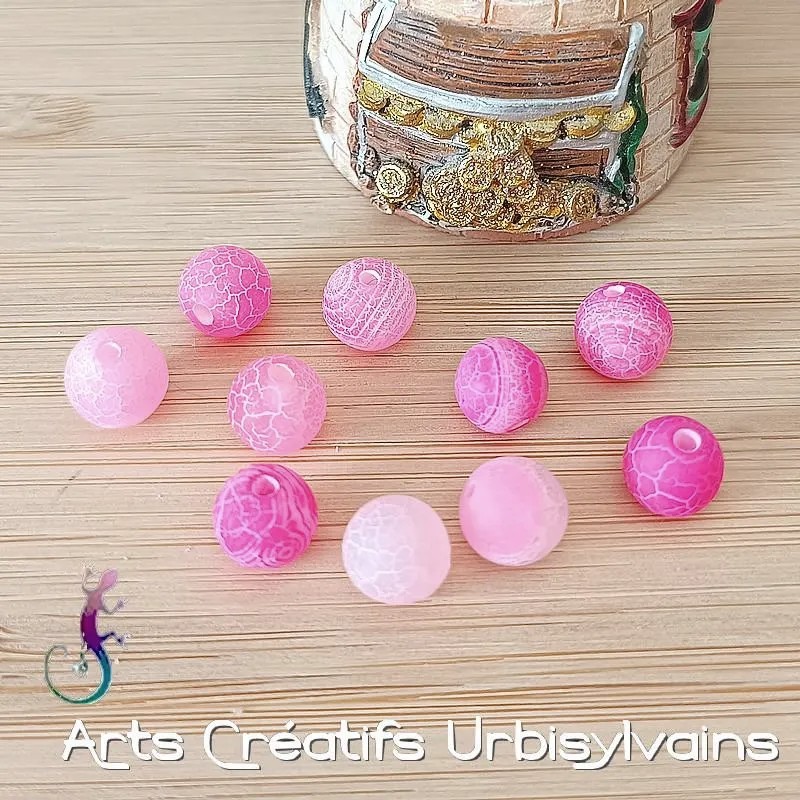 Jolie perle ronde en agate teintée rose, aspect mat givré.