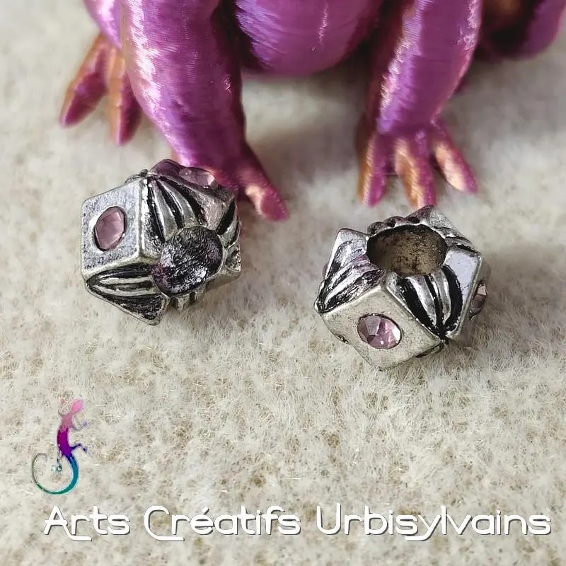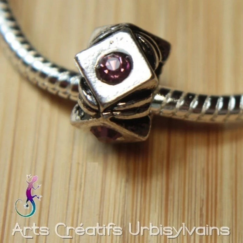 Perles vintages en métal argenté avec strass roses pour bracelet ou collier européen