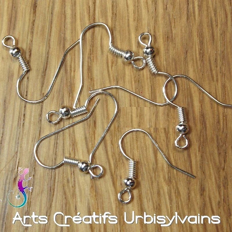 Boucles d'oreilles crochets en métal plaqué argent.