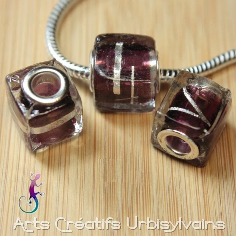Jolie perle cubique en verre murano violet.