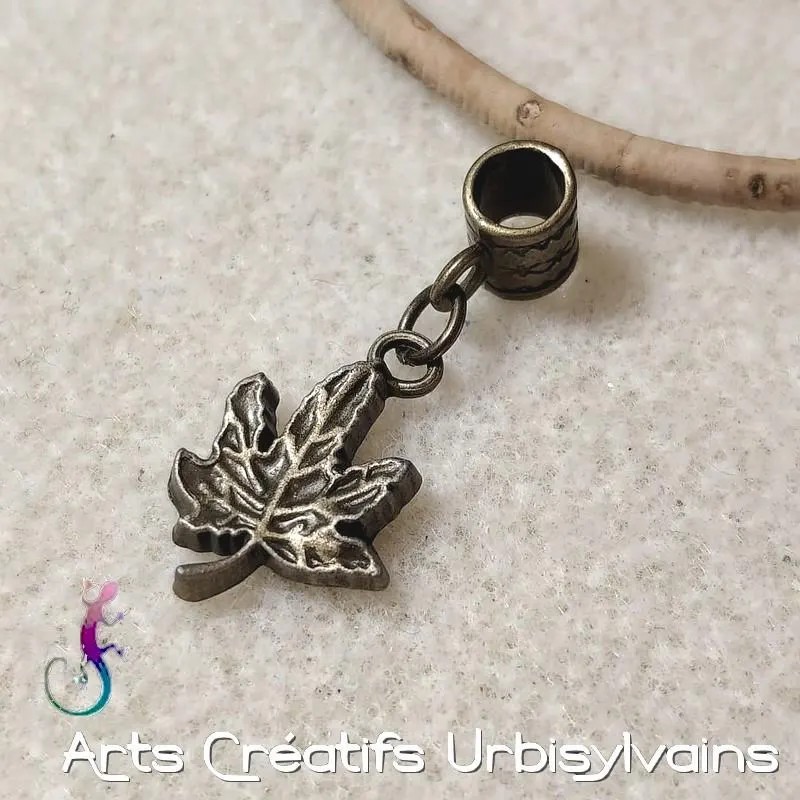 Bélière en métal couleur bronze et pendentif feuille couleur bronze.