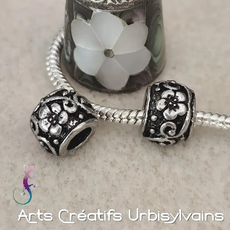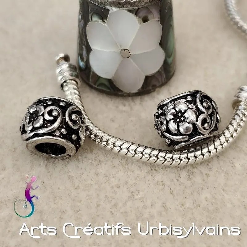 Perle anneau ouvragé en métal argenté pour bracelet ou collier européen.