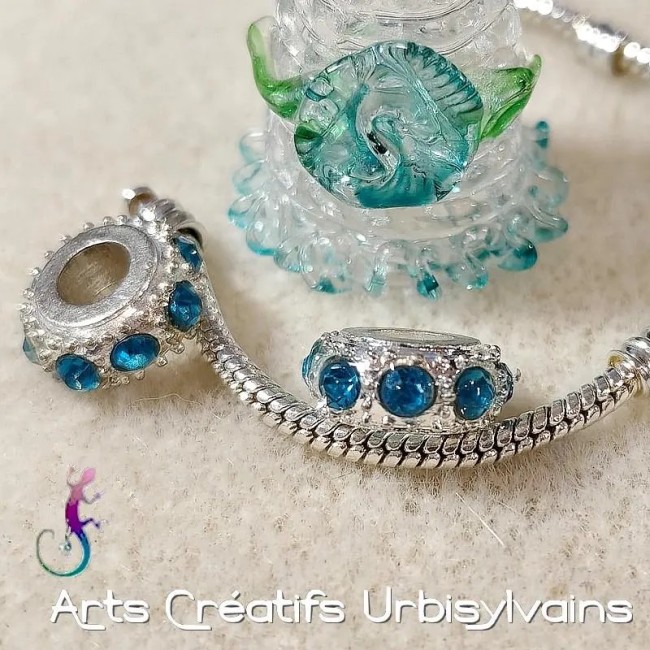 - couleur : argent et cristal turquoise