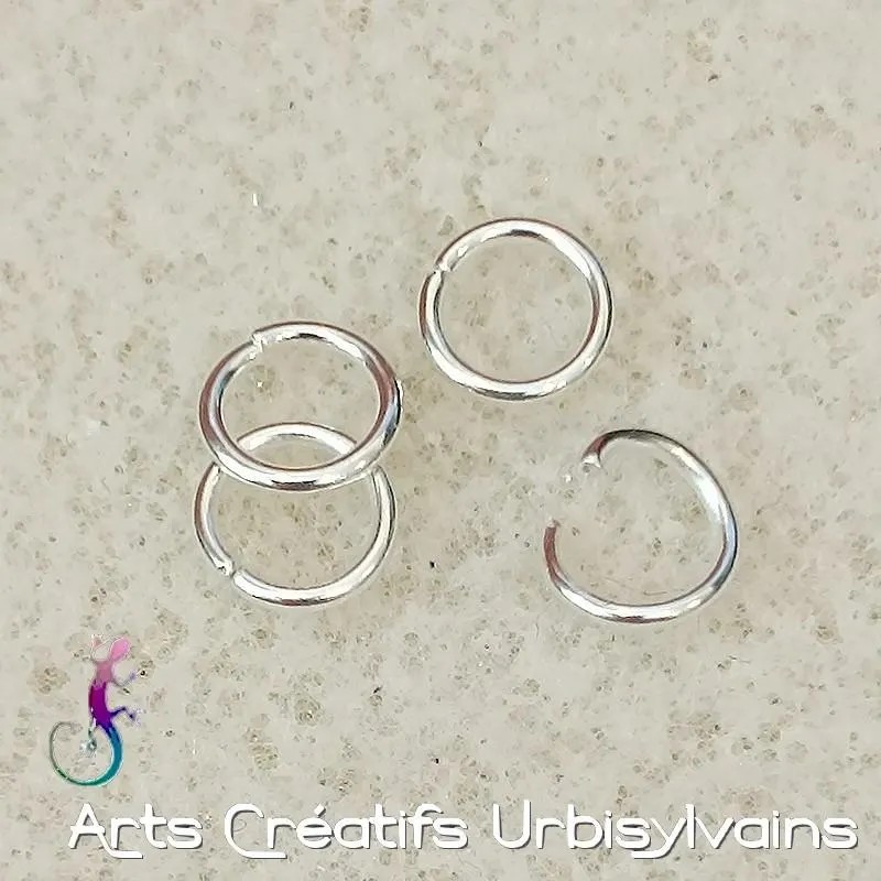 Anneaux simples ouverts en métal plaqué argent 7mm.