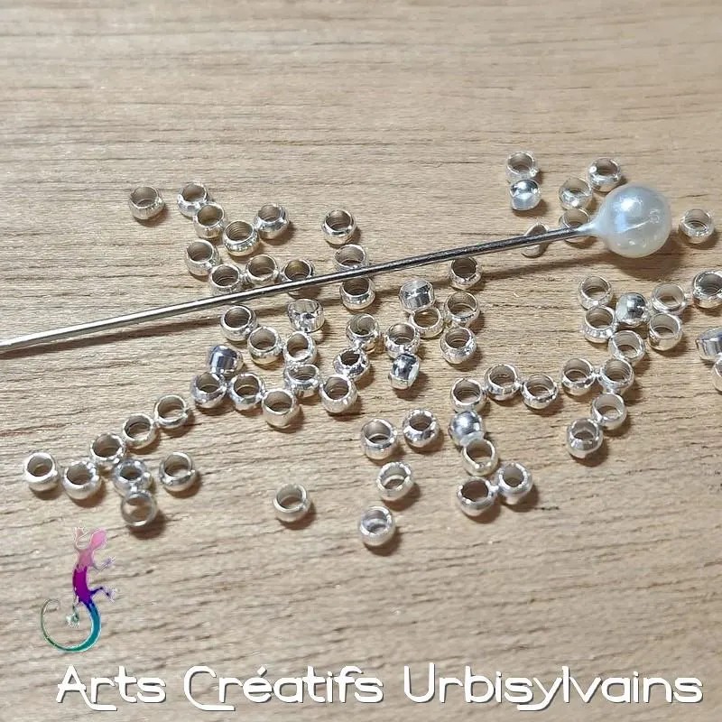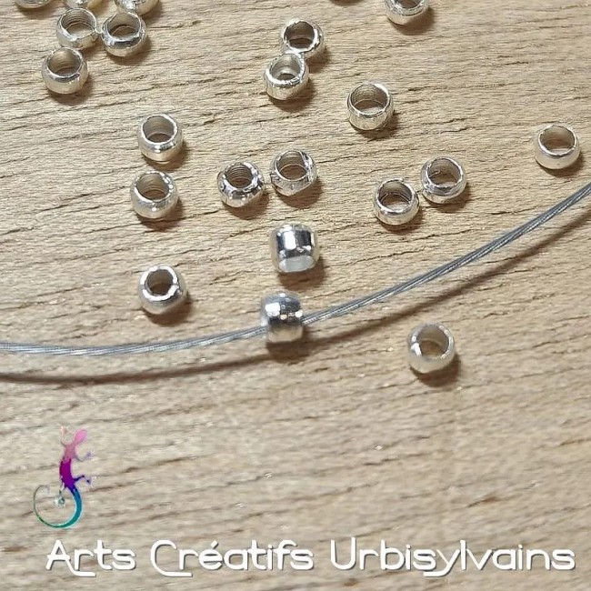 Perles à écraser en métal argenté.