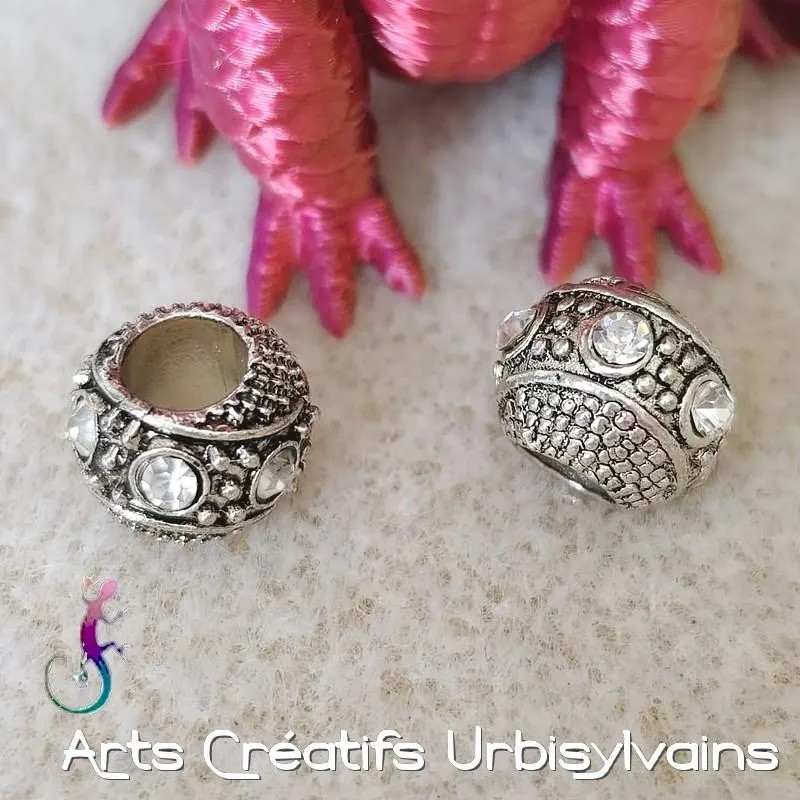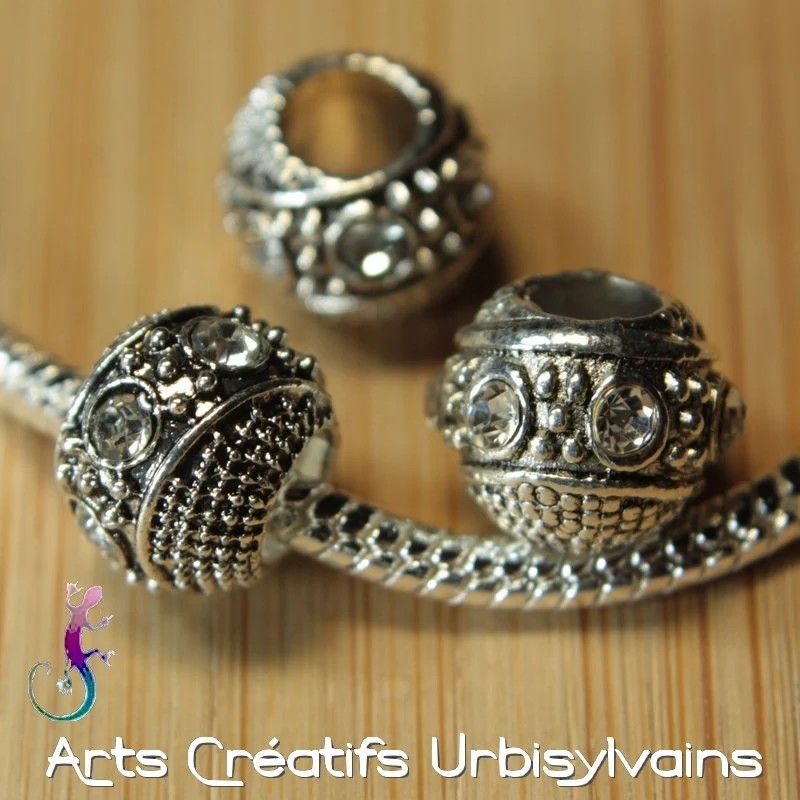 Perle ouvragée en métal argenté et cristal blanc pour bracelet ou collier européen