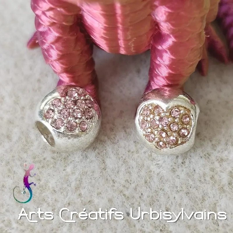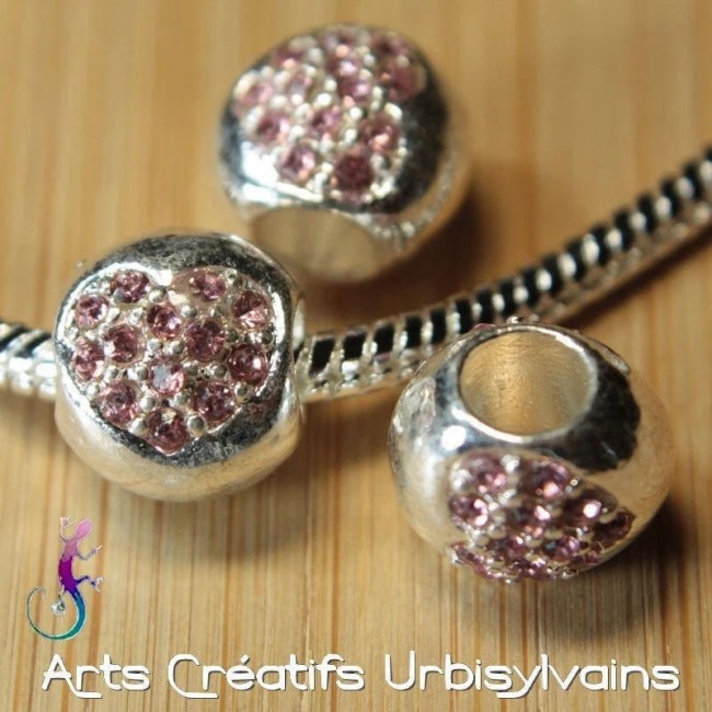 Perle en métal argenté en forme de cœur et strass roses pour bracelet ou collier européen.