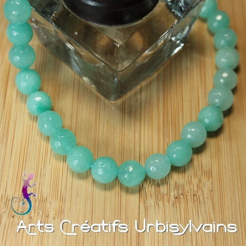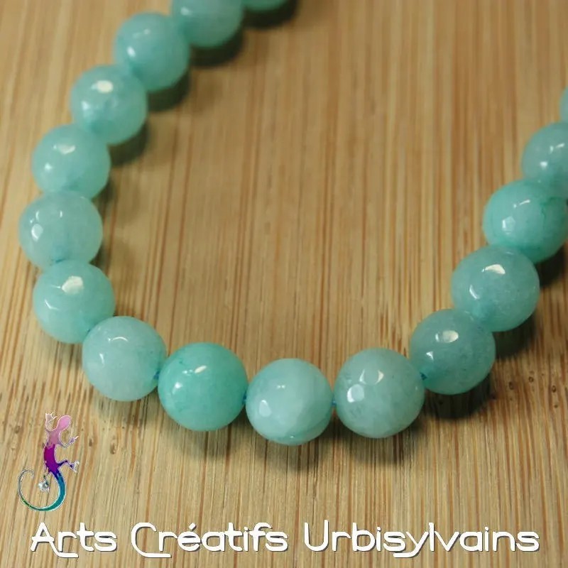 Jolie perle ronde en en agate facettée teintée turquoise.