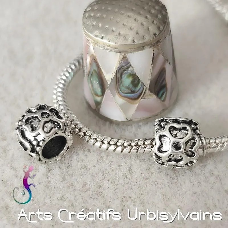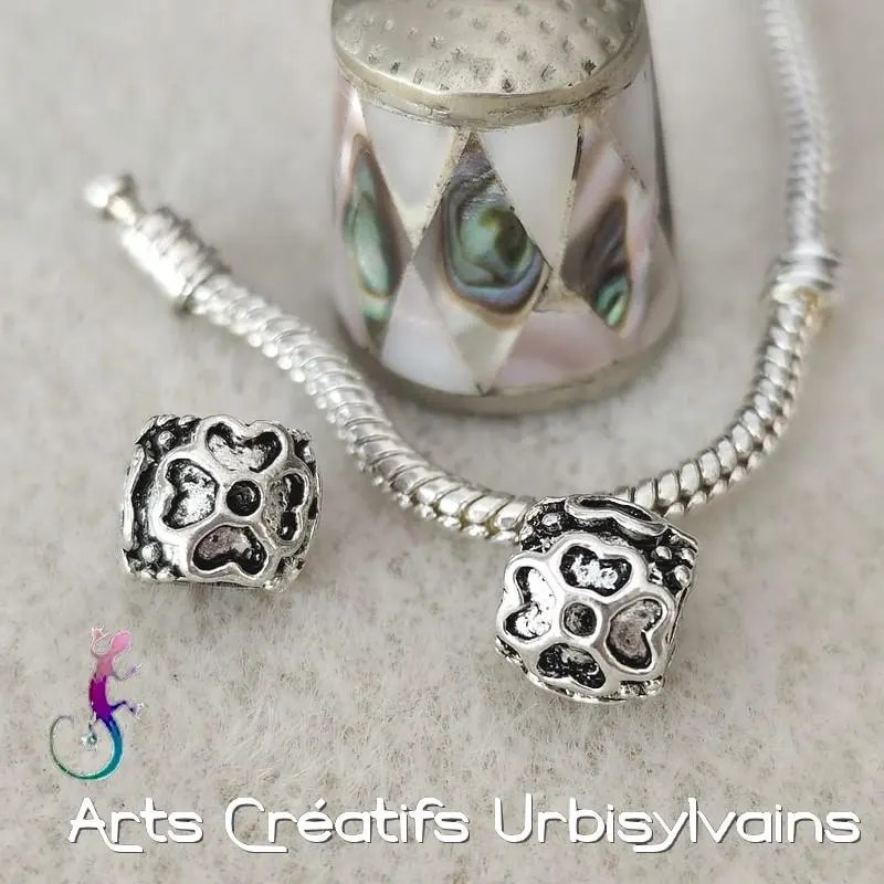 Perle ouvragée en métal argenté antique pour bracelet ou collier européen