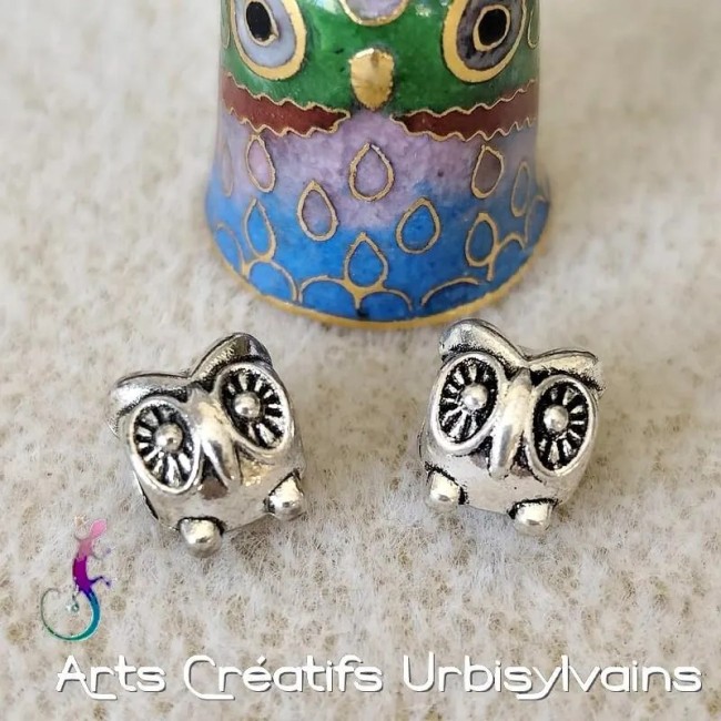 Perle en forme de hibou en métal argenté pour bracelet ou collier européen.