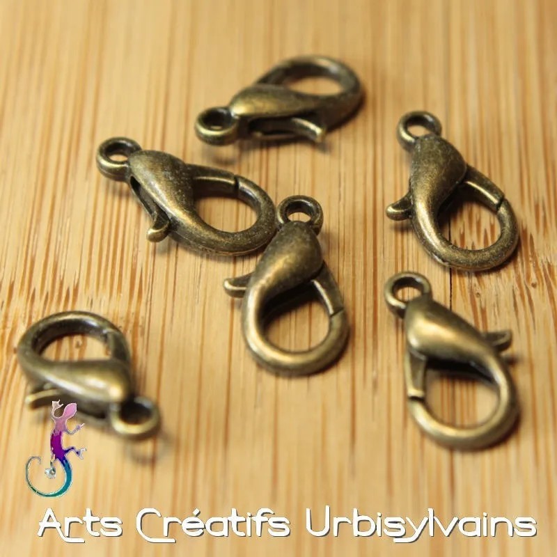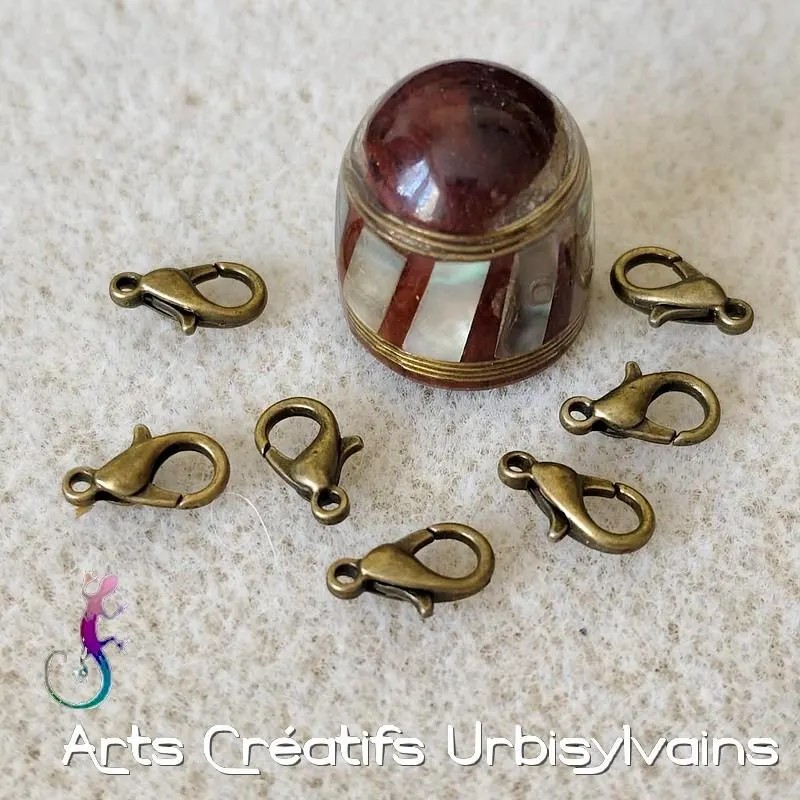 Fermoir mousqueton en métal couleur bronze.