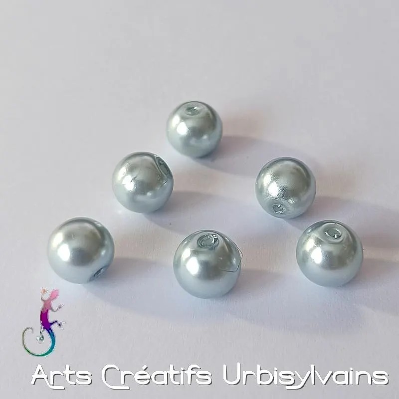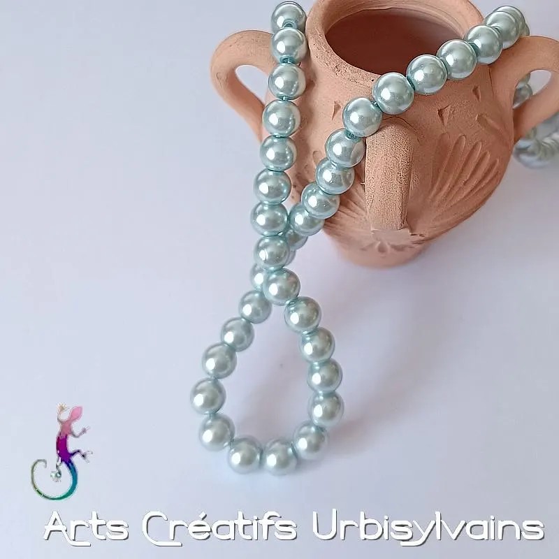 Lot de 30 perles en verre de type renaissance bleu clair 8mm