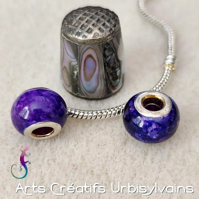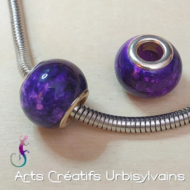 Jolie perle en verre marbré violet et rose pour bracelet ou collier européen.