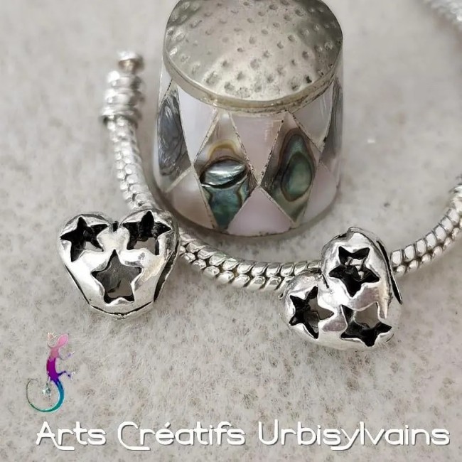 Perles coeur ajourées en métal argenté pour bracelet ou collier européen.