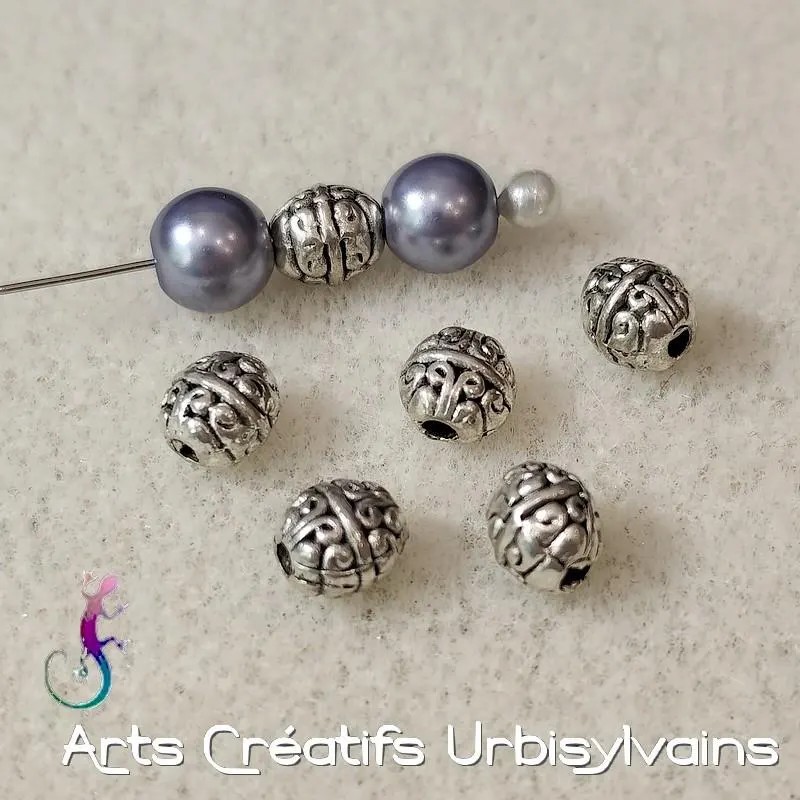 Jolie perle intercalaire ethnique en métal argenté antique.
