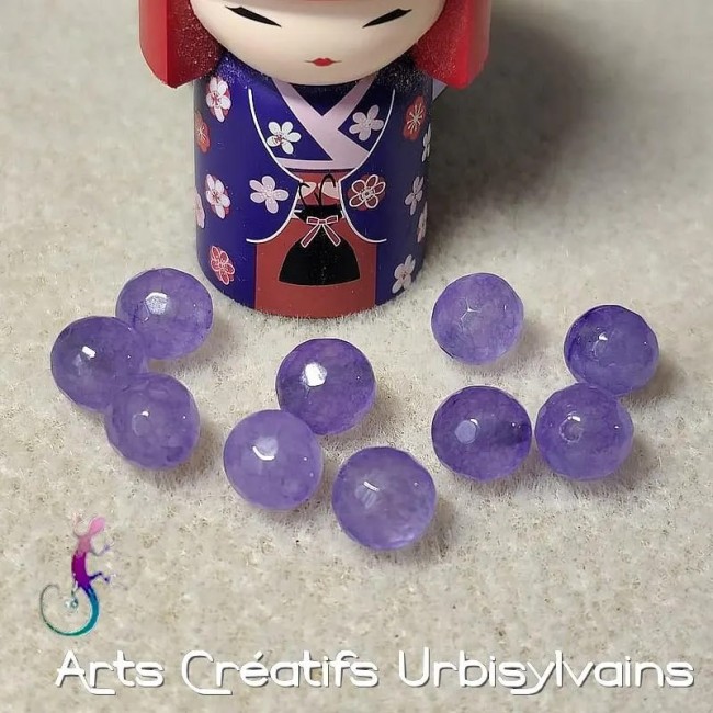 Jolie perle ronde facettée en agate teintée mauve.