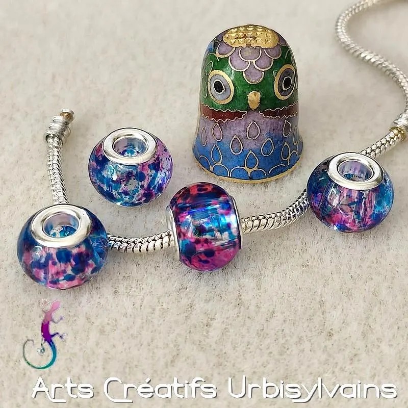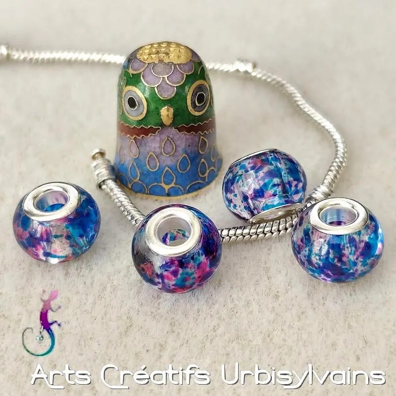 Jolie perle en verre mélange bleu et rose pour bracelet ou collier européen.