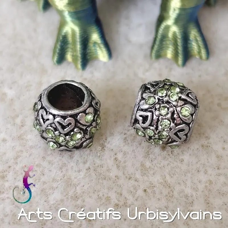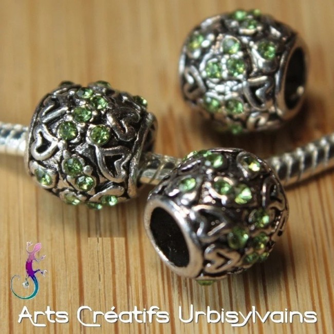 Perle en métal argenté et strass pour bracelet ou collier européen.