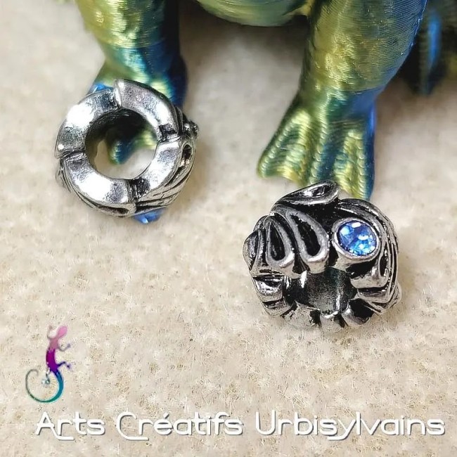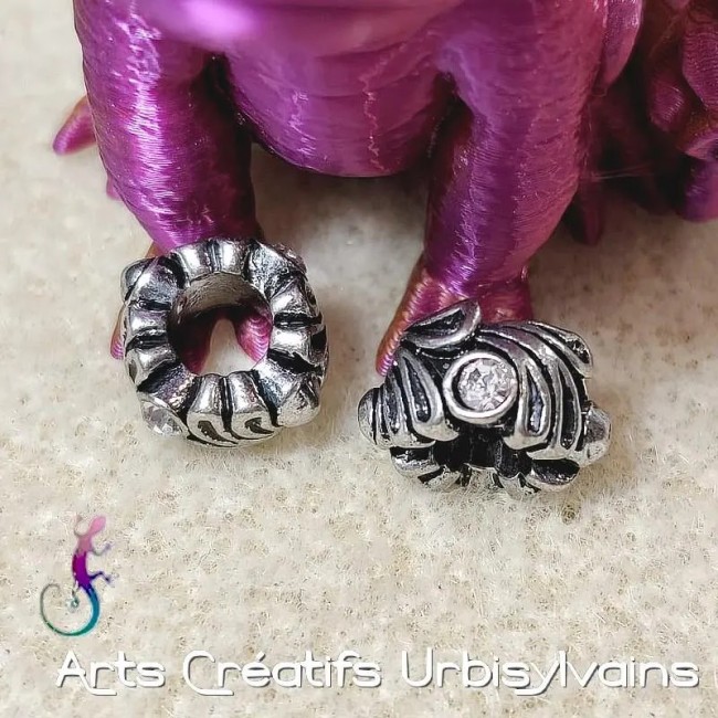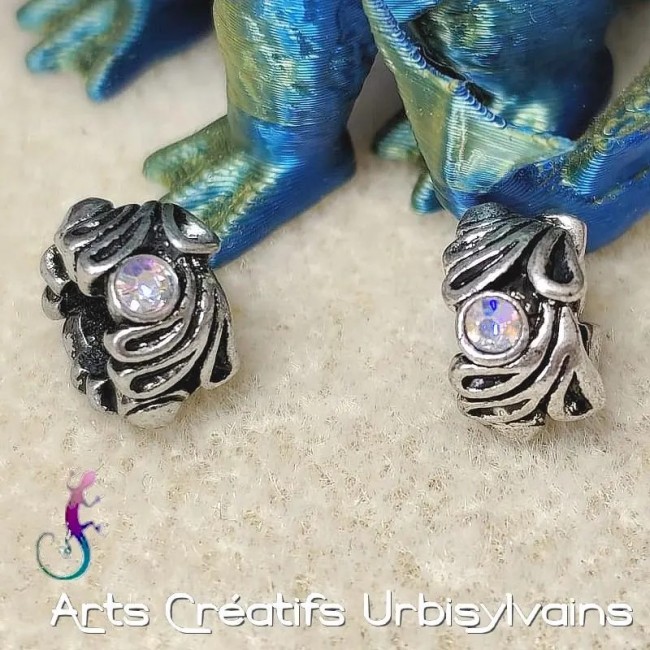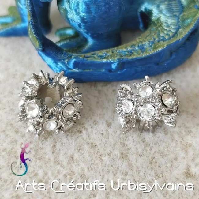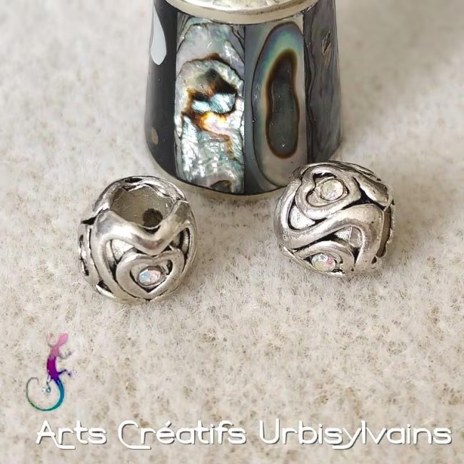 Lot de 2 perles ouvragées en métal argenté et strass irisé pour bracelet ou collier européen
