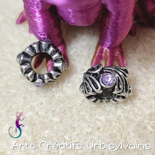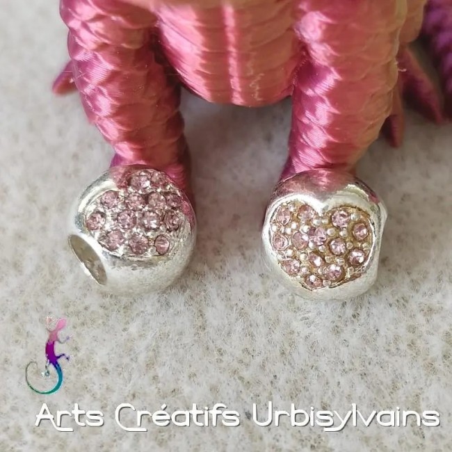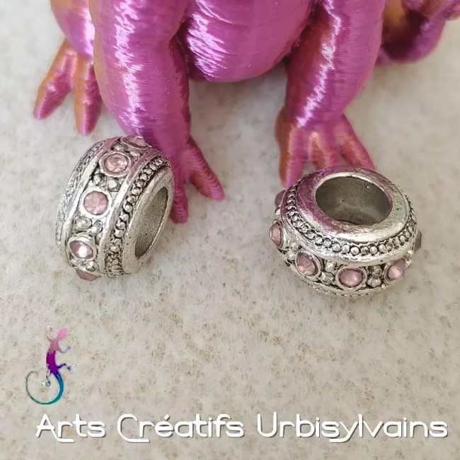 Lot de 2 perles ouvragées en métal argenté et strass rose pour bracelet ou collier européen