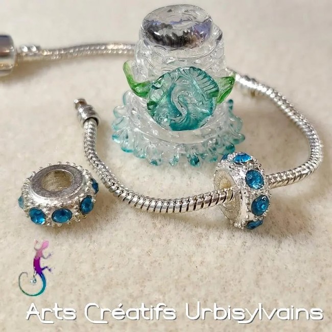 Lot de 2 perles ouvragées en métal argenté et cristal irisé pour bracelet ou collier européen