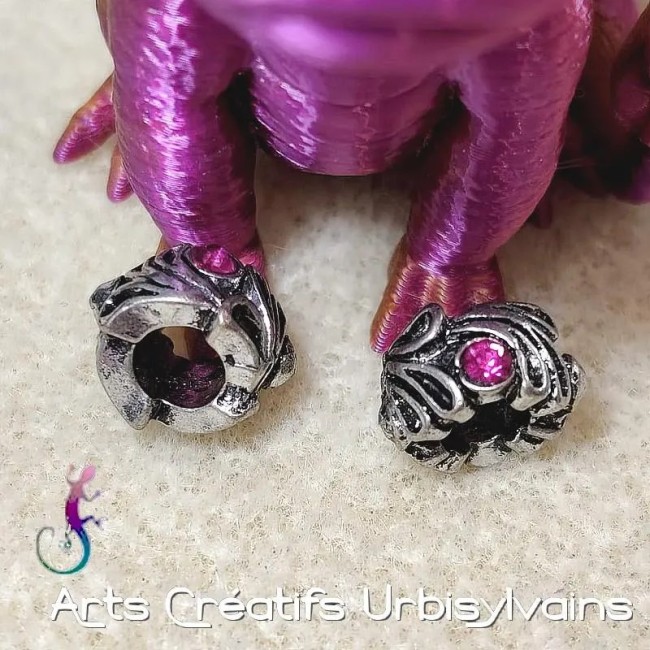 Lot de 2 perles ouvragées en métal argenté et strass rose foncé pour bracelet ou collier européen